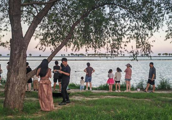 8月17日,恰逢周日,安徽省巢湖湖濱國(guó)家濕地公園里游人如織,有的在促膝長(zhǎng)談,有的在拍照留念,有的在觀賞美景,大家都樂(lè)在其中。